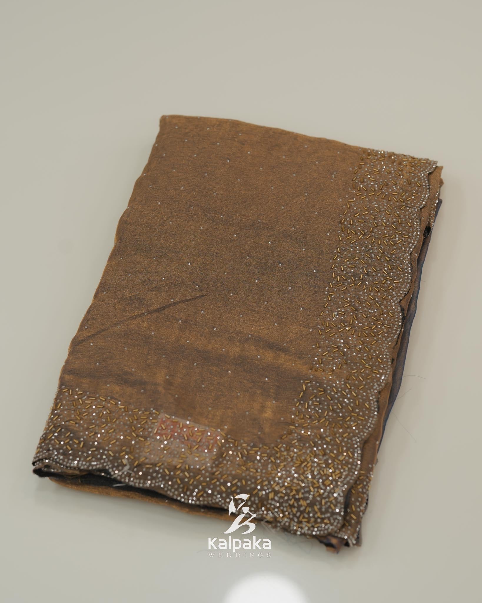 Grey and gold double shade Fancy Saree with Stone Work Border đ¸